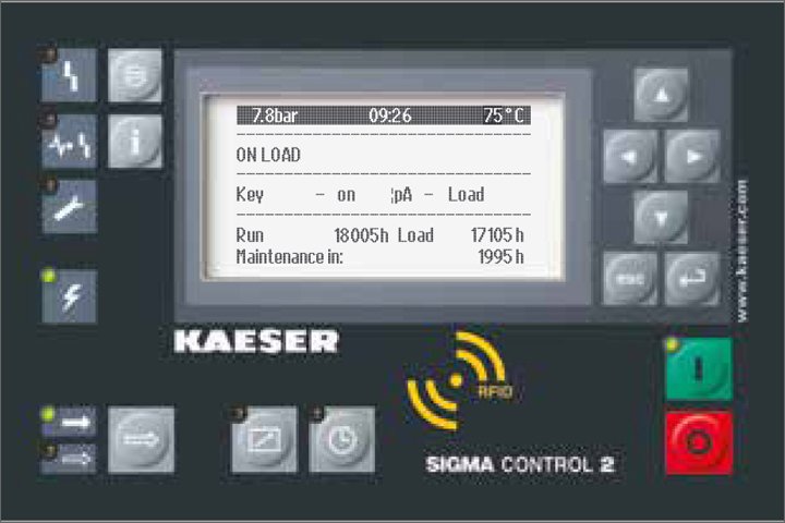 The internal SIGMA CONTROL 2 controller ensures efficient compressor control and monitoring at all times. The large display and RFID reader provide easy communication and maximum security. Variable interfaces enable a seamless networking capability.
