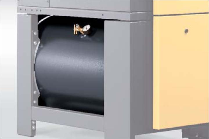 The 270-litre air receiver is especially designed for installation in AIRCENTRE systems. All inner and outer surfaces are coated to provide excellent corrosion protection and ensure long service life.